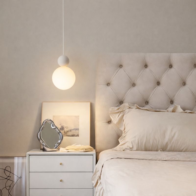 Elevate your interior ambiance with our Modern Creamy Glass Pendant Light. This versatile lighting solution brings a touch of elegance to any room, making it ideal for bedrooms, dining areas, coffee shops, bars, and even bathrooms.