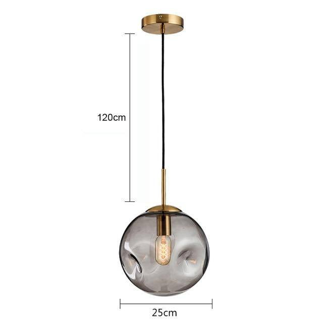 Le produit se présente sous la forme d'une sphère de 25 cm de diamètre, à la surface irrégulière en verre fumé ou de teinte ambre. Il peut servir à éclairer une table de salle à manger, décorer un salon ou même une chambre. Sa puissance muni d'une ampoule LED est de 50 W. En choisissant cette suspension design, vous vous assurerez d'avoir un éclairage tendance et de bonne qualité.