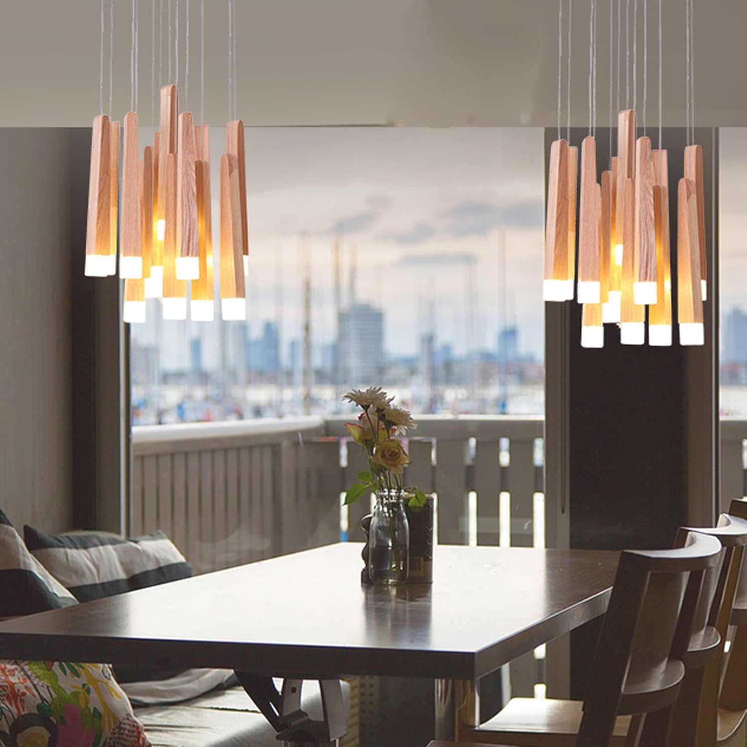 Suspension moderne longue barre en bois Nordic